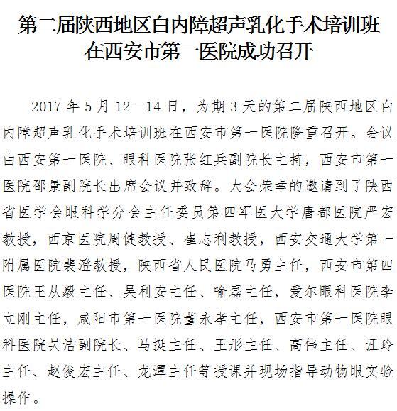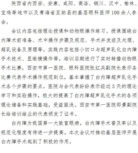 第二届陕西地区白内障超声乳化手术培训班在探花av 成功召开
