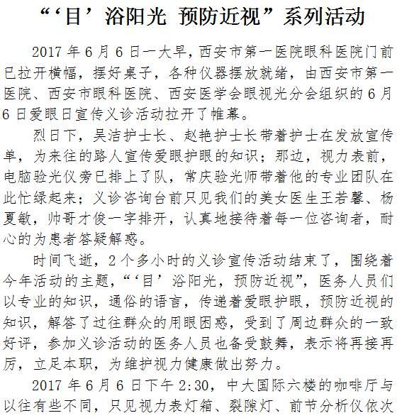“‘目’浴阳光 预防近视”系列活动