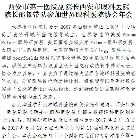 探花av 副院长西安市眼科医院院长邵景带队参加世界眼科医院协会年会