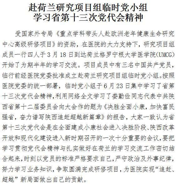 赴荷兰研究项目组临时党小组学习省第十三次党代会精神