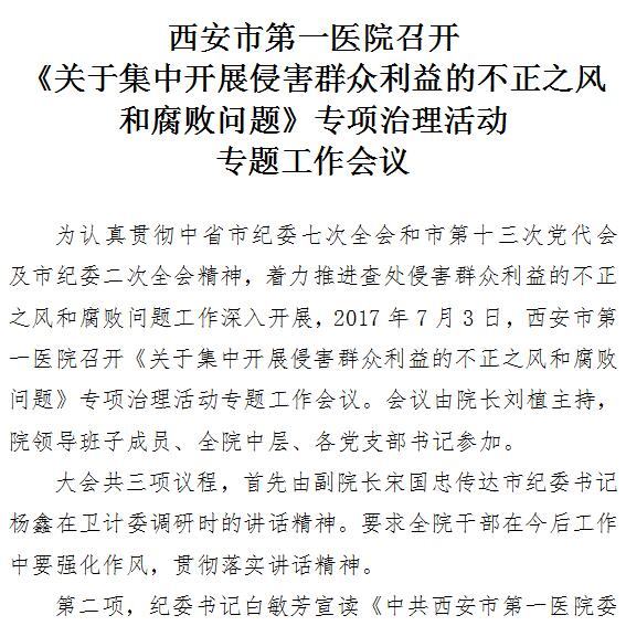 我院召开《关于集中开展侵害群众利益的不正之风和腐败问题》专项治理活动专题工作会议