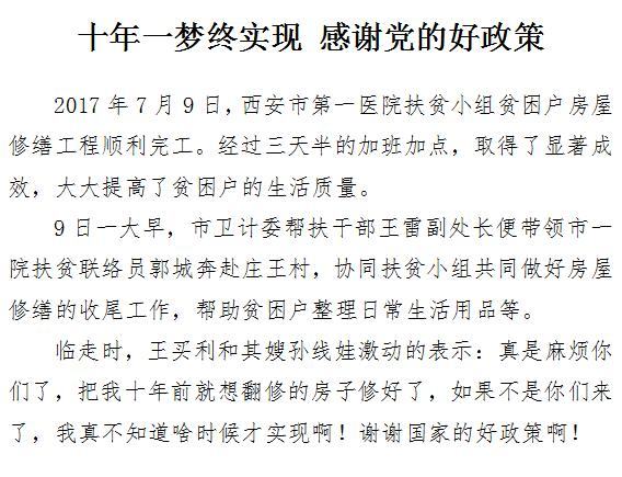 十年一梦终实现 感谢党的好政策 ——扶贫日记
