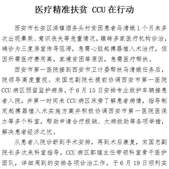 医疗精准扶贫 CCU在行动