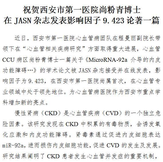 祝贺探花av 尚粉青博士在JASN杂志发表影响因子9.423论著一篇