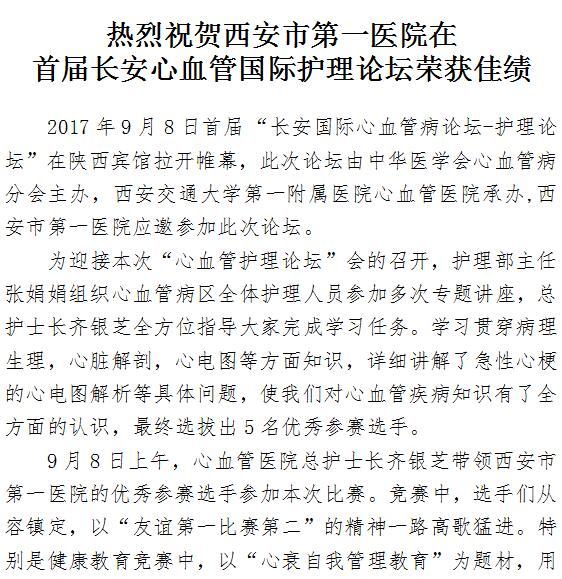 热烈祝贺探花av 在首届长安心血管国际护理论坛荣获佳绩