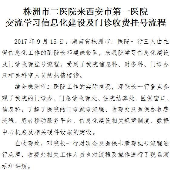 株洲市二医院来探花av 交流学习信息化建设及门诊收费挂号流程