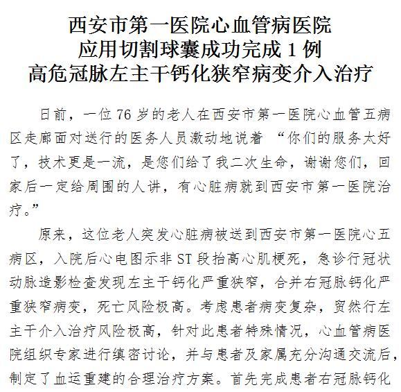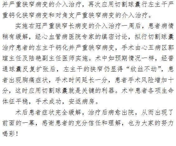 心血管病医院应用切割球囊成功完成1例高危冠脉左主干钙化狭窄病变介入治疗