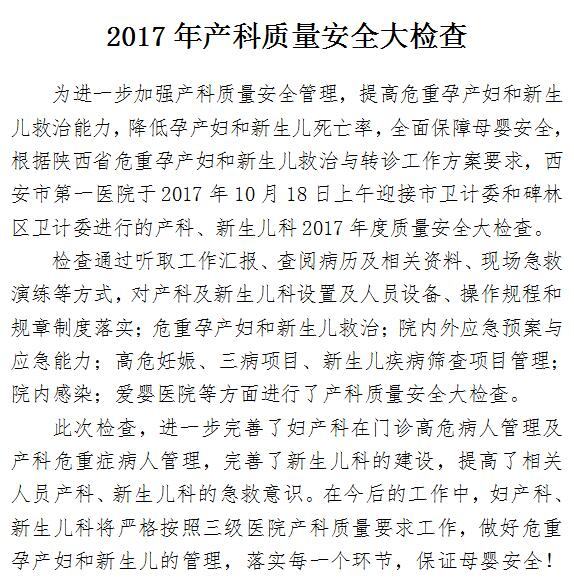 2017年产科质量安全大检查