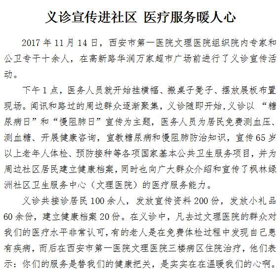 义诊宣传进社区 医疗服务暖人心 ——文理医院科创社区义诊活动