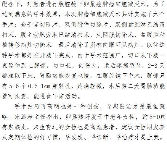 探花av 完成腹腔镜下卵巢癌肿瘤细胞减灭术