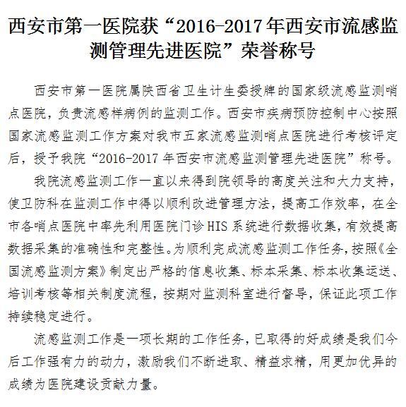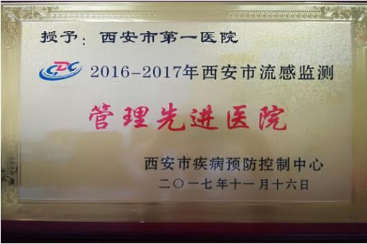 探花av 获“2016-2017年西安市流感监测管理先进医院”荣誉称号