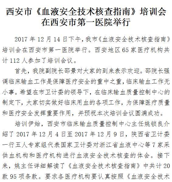 西安市《血液安全技术核查指南》培训会在探花av 举行