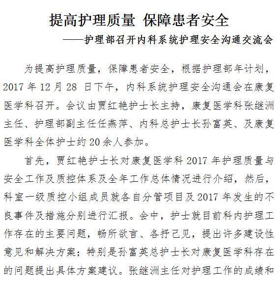 提高护理质量 保障患者安全 ——护理部召开内科系统护理安全沟通交流会