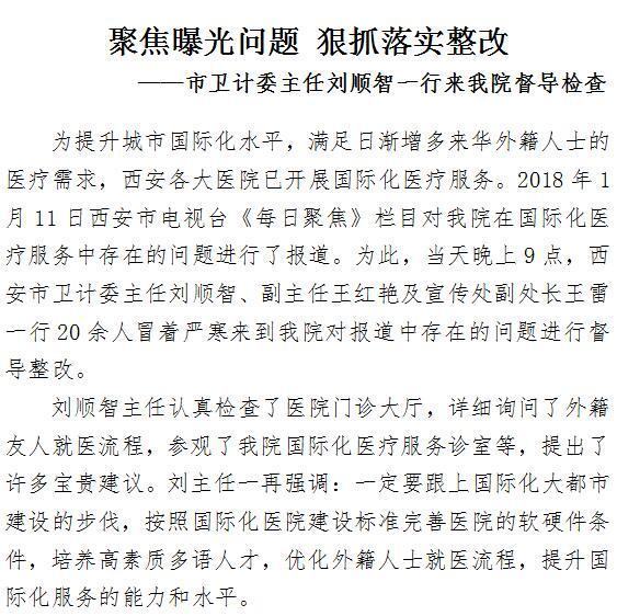 聚焦曝光问题 狠抓落实整改 ——市卫计委主任刘顺智一行来我院督导检查