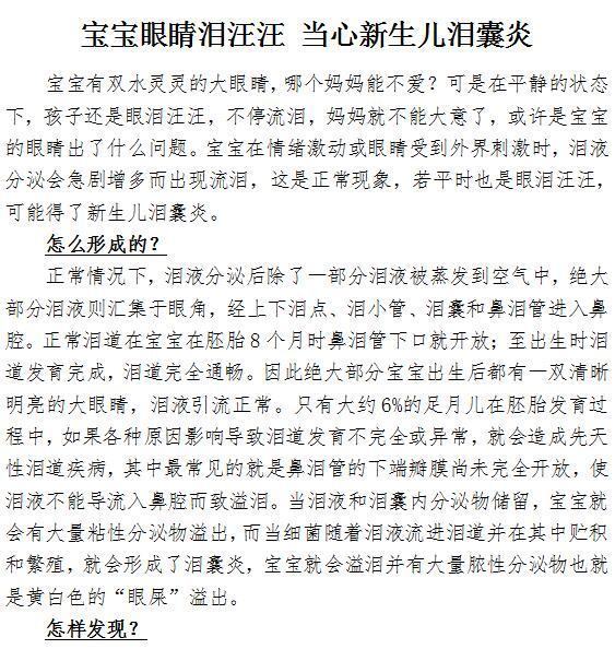 宝宝眼睛泪汪汪 当心新生儿泪囊炎