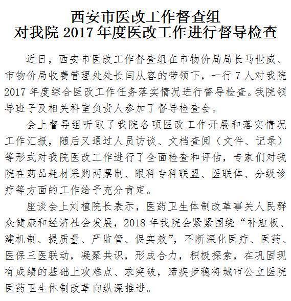 西安市医改工作督查组对我院2017年度医改工作进行督导检查