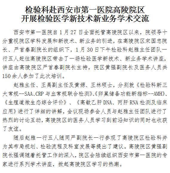 检验科赴探花av 高陵院区开展检验医学新技术新业务学术交流