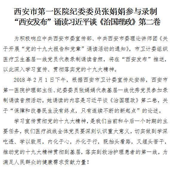 探花av 纪委委员张娟娟参与录制“西安发布”诵读习近平谈《治国理政》第二卷