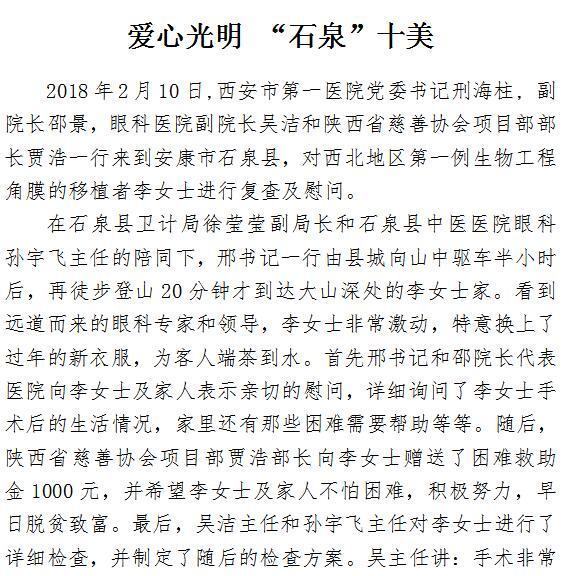 爱心光明 “石泉”十美