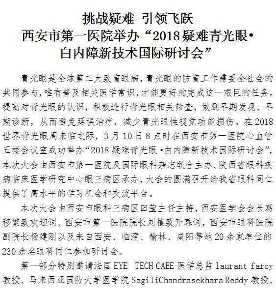 挑战疑难 引领飞跃——探花av 举办“2018疑难青光眼? 白内障新技术国际研讨会”