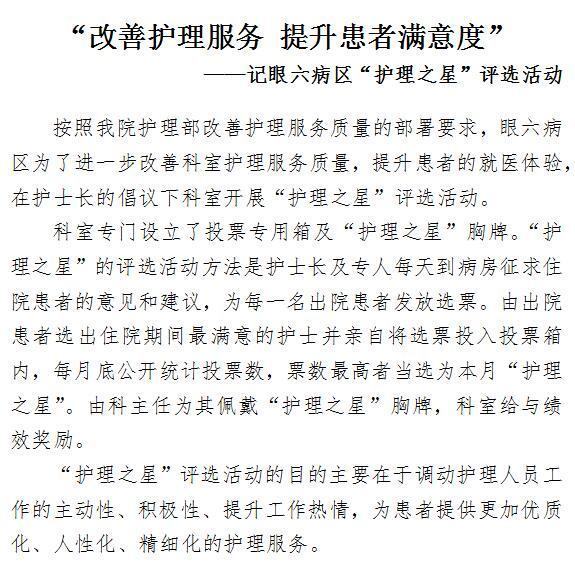 “改善护理服务 提升患者满意度” ——记眼六病区“护理之星”评选活动