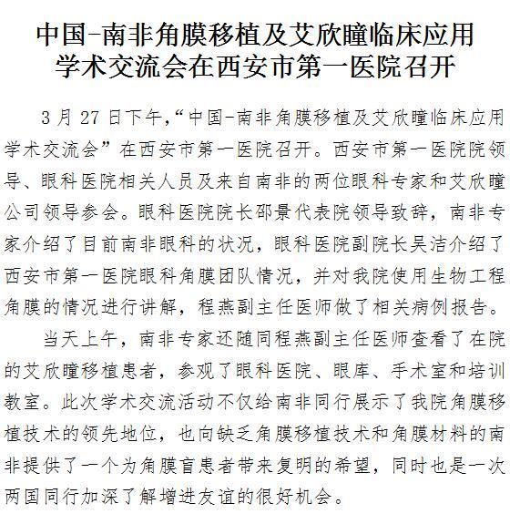 中国-南非角膜移植及艾欣瞳临床应用学术交流会在探花av 召开