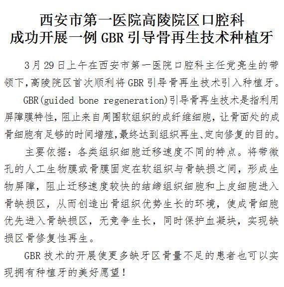 探花av 高陵院区口腔科成功开展一例GBR引导骨再生技术种植牙