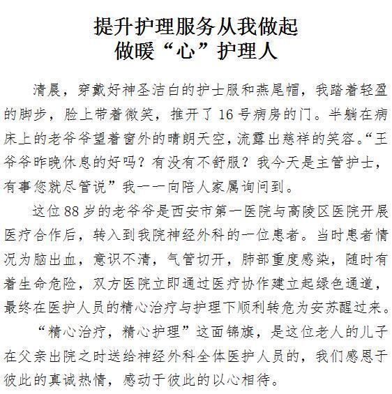 提升护理服务从我做起 做暖“心”护理人