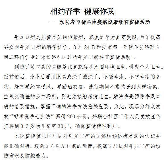 相约春季 健康你我 ——预防春季传染性疾病健康教育宣传活动