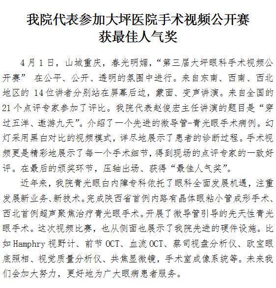 探花av 代表参加大坪医院手术视频公开赛获最佳人气奖