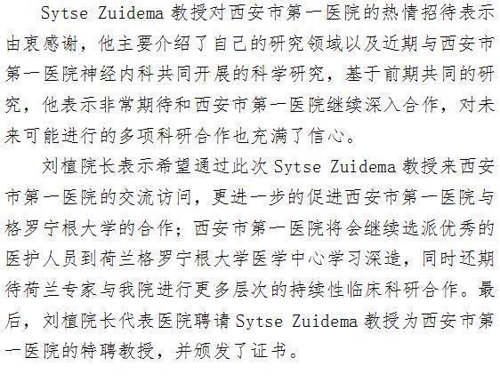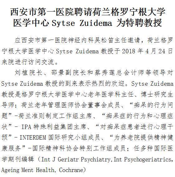 探花av 聘请荷兰格罗宁根大学医学中心Sytse Zuidema为特聘教授