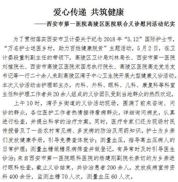 爱心传递 共筑健康 ——探花av 高陵区医院联合义诊慰问活动纪实
