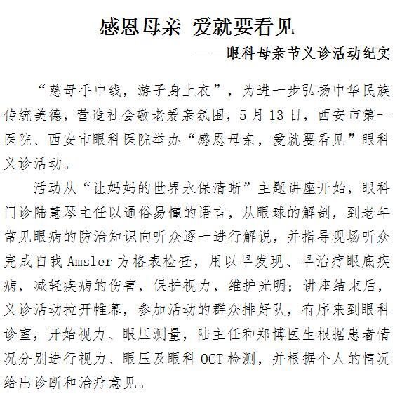 感恩母亲 爱就要看见 ——眼科母亲节义诊活动纪实