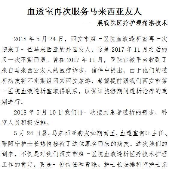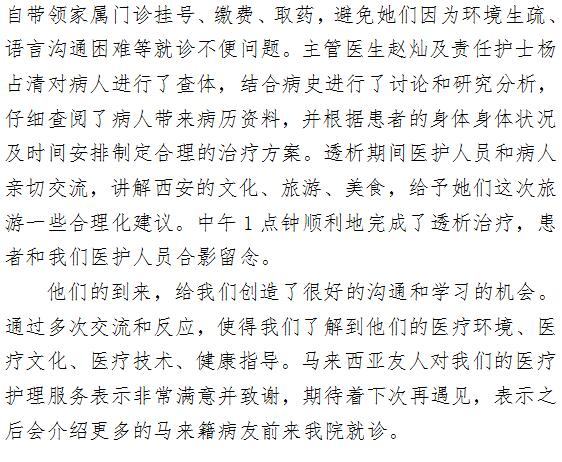 血透室再次服务马来西亚友人 ——展我院医疗护理精湛技术