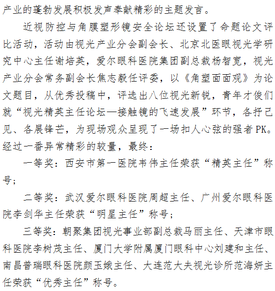 迈入新时代 关注眼健康 ——我院韦伟主任斩获“目立康杯”视光精英主任华冠