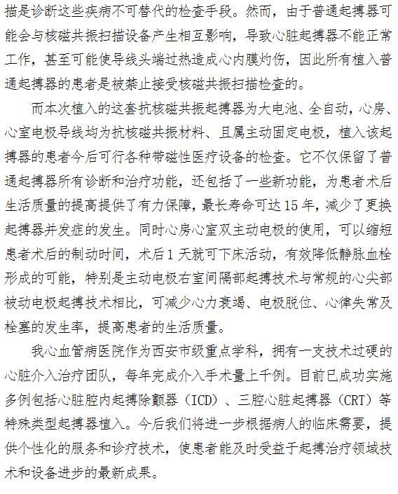 探花av 心血管病医院成功开展抗磁共振起搏器植入