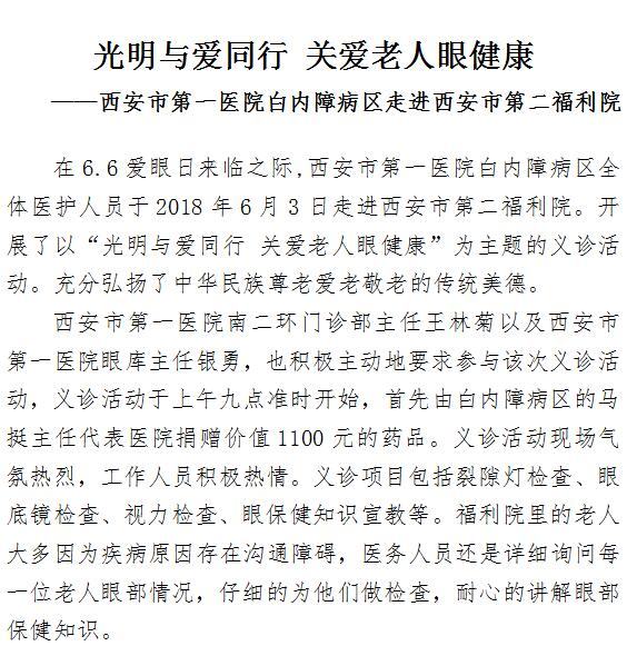 光明与爱同行 关爱老人眼健康 ——探花av 白内障病区走进西安市第二福利院