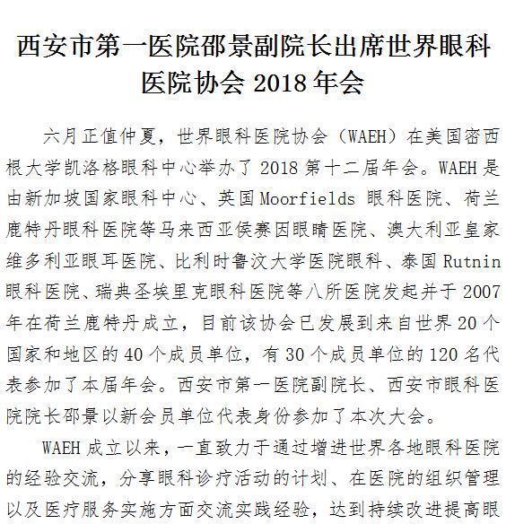 探花av 邵景副院长出席世界眼科医院协会2018年会