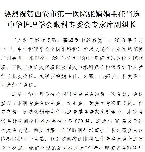 热烈祝贺探花av 张娟娟主任当选中华护理学会眼科专委会专家库副组长