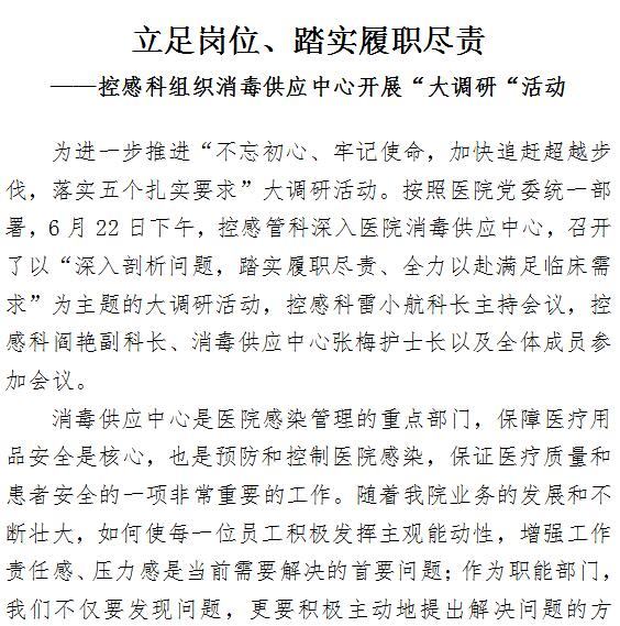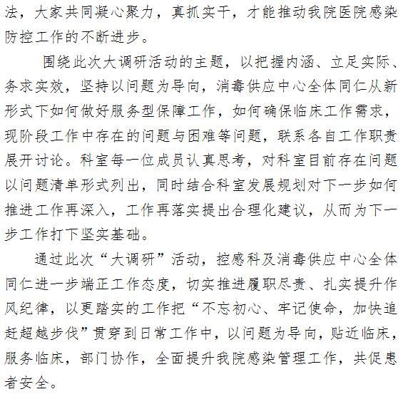 立足岗位、踏实履职尽责 ——控感科组织消毒供应中心开展“大调研“活动