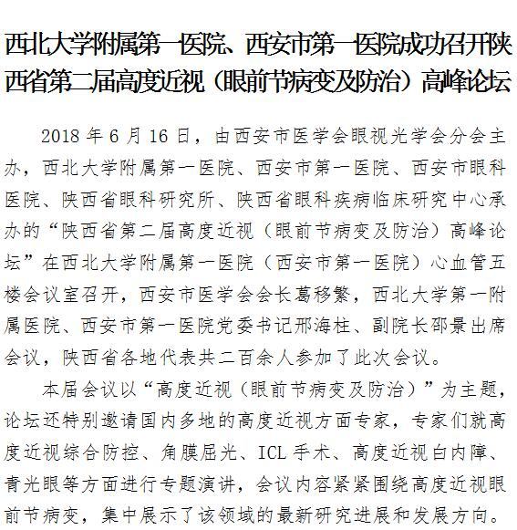 西北大学附属第一医院、探花av 成功召开陕西省第二届高度近视高峰论坛