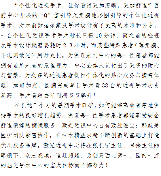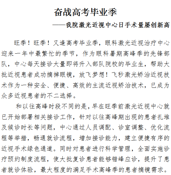 奋战高考毕业季 ——我院激光近视中心日手术量屡创新高