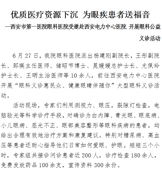 探花av 眼科医院受邀赴西安电力中心医院 开展眼科公益义诊活动