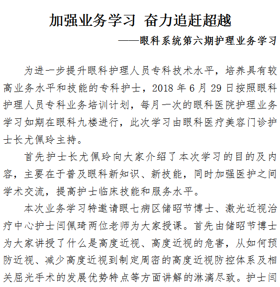 加强业务学习 奋力追赶超越 ——眼科系统第六期护理业务学习