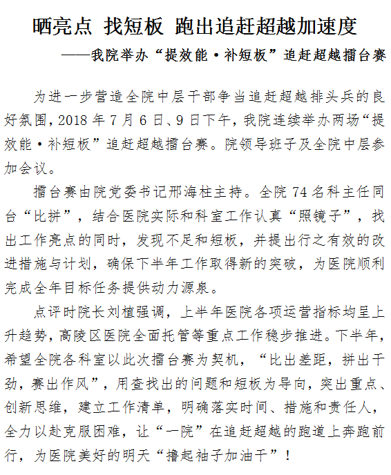 晒亮点 找短板 跑出追赶超越加速度 ——我院举办“提效能·补短板”追赶超越擂台赛