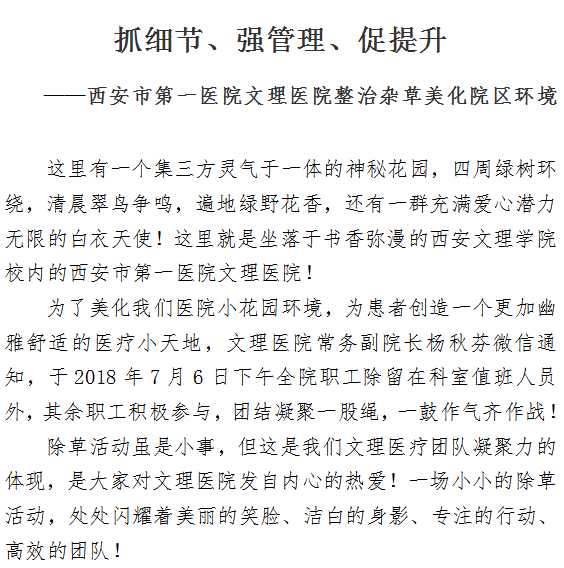 抓细节、强管理、促提升 ——探花av 文理医院整治杂草美化院区环境