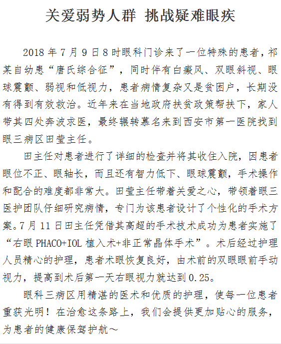 关爱弱势人群 挑战疑难眼疾