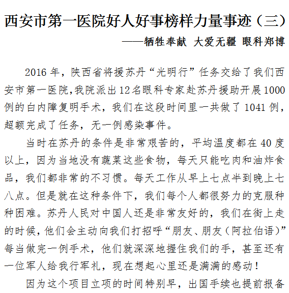 探花av 好人好事榜样力量事迹(三) ——牺牲奉献 大爱无疆 眼科郑博