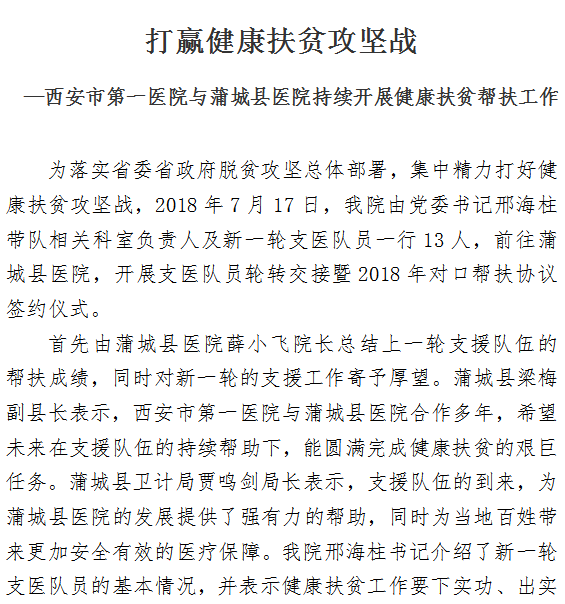 打赢健康扶贫攻坚战 —探花av 与蒲城县医院持续开展健康扶贫帮扶工作