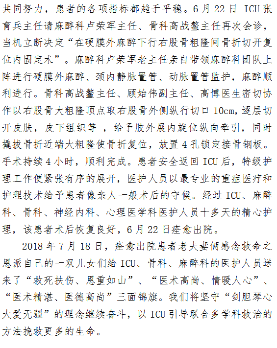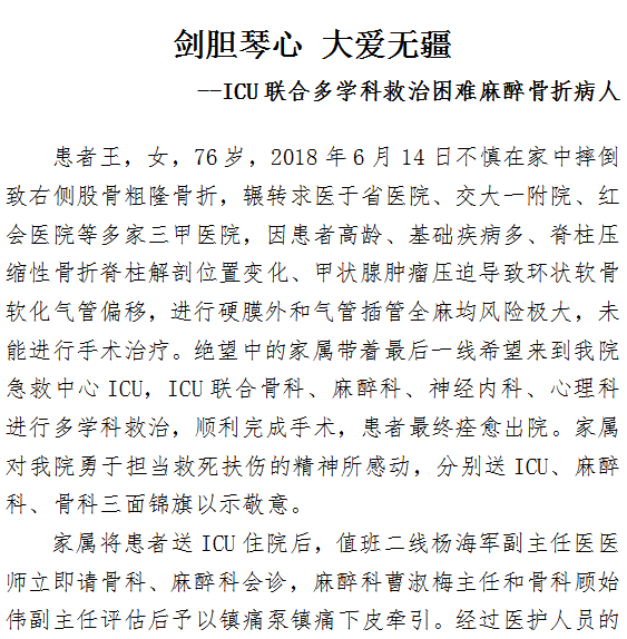剑胆琴心 大爱无疆 --ICU联合多学科救治困难麻醉骨折病人